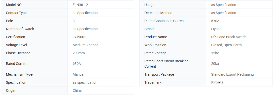 FLN36-12KV SF6 -kuormituskytkin on kytkinlaite keskijännitekytkinlaitteille käyttämällä SF6-kaasua kaaren sammutus- ja eristysväliaineena. Työpisteitä on kolme: avoin, suljettu, maapallon sijainti kytkimessä. Kompakti koko, helppo asennus ja hieno sopeutumiskyky ympäristöön tekevät kytkimestä sopivan moniin eri sovelluksiin.