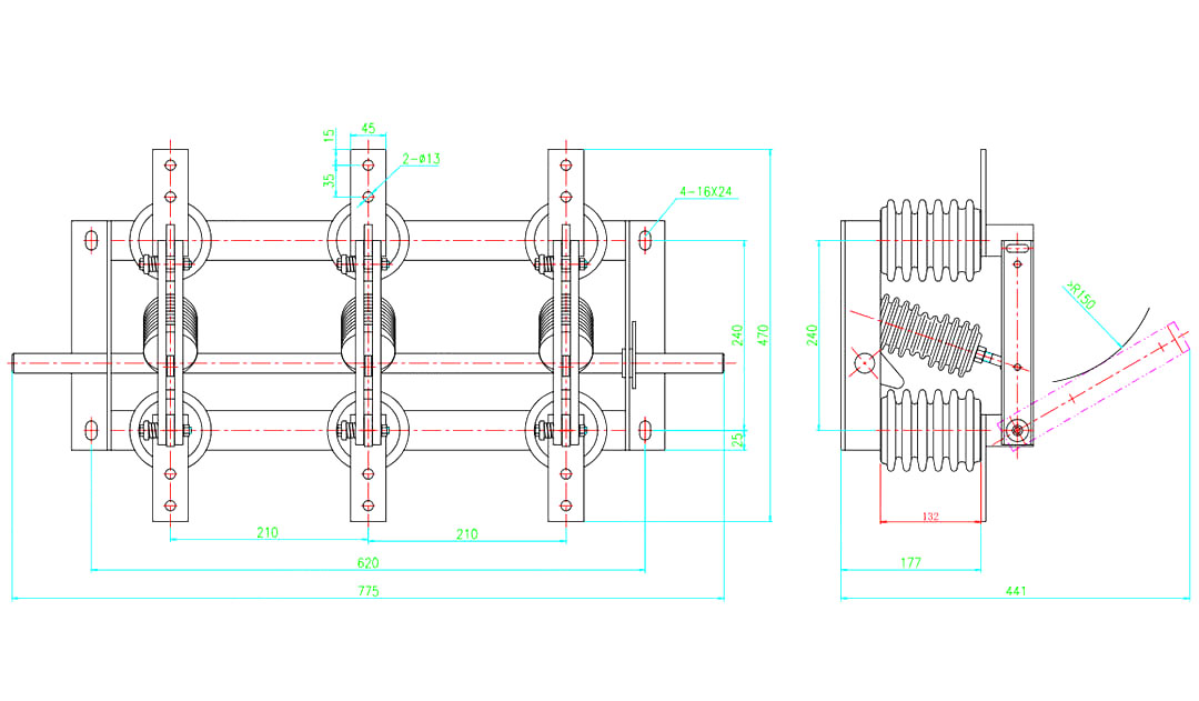 -Yhden pylvään eristyskytkin: Käytä suoraan pystysuuntaista tilaa yläpuolella olevasta väylähykyn alapuolella sähköeristyksenä, säästämällä tilaa, vähentämällä kytkentäjohtimia ja tarjoamalla selkeät katkaisutilat, jotka ovat erityisen sopivia erittäin korkean jännitteen läpäisyyn.