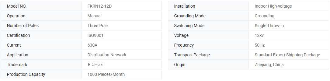 FKN12-12D/630-20 -sarjan ilma-blast-kuormituskytkentä (jäljempänä nimellä FKRN12- 12D) ja FKRN12-12D-sarjan ilma-blast-kuormituskytkin ja sulakeyhdistelmälaitteet ovat uusia sarjojen kytkinlaitteita, jotka koskevat kolmivaiheista sähkö- ja jakelujärjestelmää, jonka nimellisjohto on 12KV, ja se on suojattu ja ohjauslaite, kaapeli ja pään johdotus.