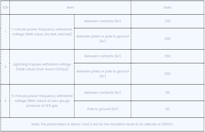 Rikkiheksafluoridikaasun luontaisen korkean eristyslujuuden ja katkaisijan optimaalisen kontaktin liikkeen vuoksi katkaisija katkaisee kapasitiivisen virran ilman uudelleenjohtoa; Ulkoinen eristystaso on korkea, ulkoinen eristys on suunniteltu suurella hiipivällä etäisyydellä, hiimissuhteen etäisyys on ≥31 mm/kV ja liankestävyyden suorituskyky on erinomainen. Se voi toimia myös turvallisesti ankarissa ympäristöissä;