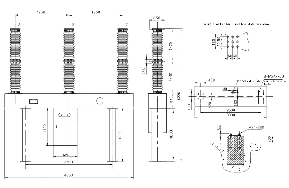 Katkaisija omaksuu kolmivaiheisen posliinipylvään yhden katkaisun rakenteen. Kolme vaihetta on varustettu jousen toimintamekanismilla, joka on järjestetty keskitetysti ja kolmivaiheinen, joten ulkonäkö on uusi ja hieno. Katkaisija käyttää SF6 -kaasua eristys- ja kaaren sammutusväliaineena. Toiminnan aikana katkaisijan kolmen navan SF6-kaasu on kytketty ja osoitintyyppistä tiheysrelettä käytetään sen paineen ja tiheyden etenemisen seuraamiseen. Itsenergian kaaren sammutusperiaatteen ja optimoidun suunnittelun vuoksi katkaisijan liikejärjestelmässä mekaanista tehokkuutta paranee tehokkaasti ja toimintatyö minimoituu;