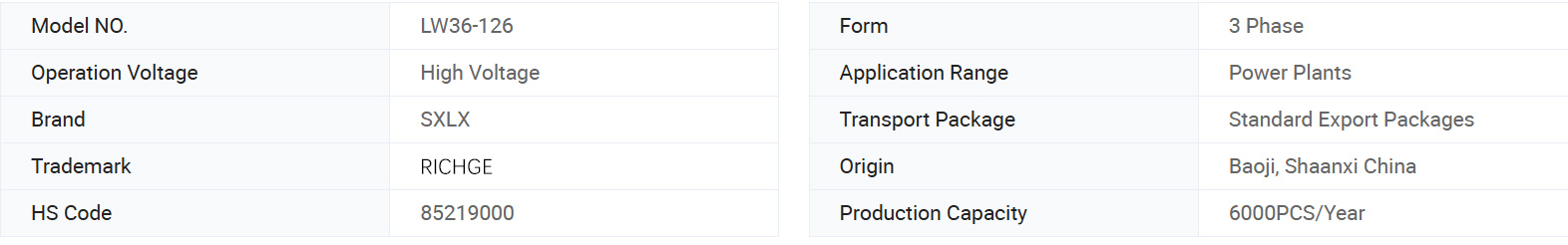 Tämä tuote käyttää SF6 -kaasua sekä kaaren sammutus- että eristävää väliaineena. Se on varustettu viimeisimmällä itsemurskatulla kaaren sammutustekniikalla ja siinä on uusi jousen toimiva mekanismi. LW36-126/3150-40 tarjoaa pitkän sähköisen käyttöiän, alhaisen toiminnan, alhaisen melun ja korkean luotettavuuden, mikä tekee siitä luotettavimman valinnan korkean korkean alueen tai 132 kV: n tehojärjestelmille. Se voi myös korvata samantyyppiset tuodut tuotteet.