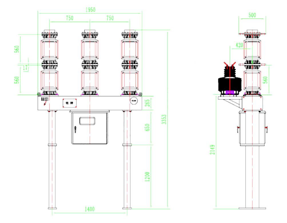 Tuotteella on erinomainen murtokyky, se käyttää paineilmatyyppiä kaari sammutuskammiota, sähköikä on pitkä, ei korvaa rikkiheksafluoridikaasua, mekaaninen luotettavuus on korkea, mekaaninen käyttöikä on pitkä, voi toimia usein; Jokainen sarja voidaan varustaa 6-12 nykyisellä muuntajalla käyttäjän valintaa varten. Tämä tuote omaksuu uuden MKZ -mallin SF6 -osoittimen tiheysmittarin, lämpötilan muutos ei vaikuta painemittarin lukemiseen.