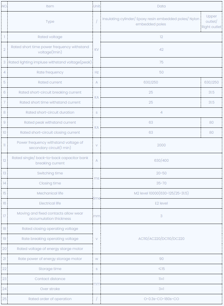 VSG-12C-tyyppinen sivuasennus Sisätiloissa korkeajännite tyhjiökatkaisija voidaan soveltaa 12 kV: n sähköjärjestelmään, mikä on suoja-, teollisuus- ja kaivosyritysten suoja- ja ohjausyksikkö, sitä voidaan käyttää erityyppisten kuormien ja usein toiminnan vaihtamiseen, toistuvasti rikkoen oikosulun virran tilannetta. Tuote omaksuu uuden tyyppisen katkaisijan, VSG -osa voi ottaa käyttöön kansainvälisen upotetun navan, tyhjiökatkaisimen ja pääpiirin osaa, joka on kiinteästi suljettu kokonaisuudeksi, suojaa keskeytystä törmäykseltä, pölystä ja geelikuvalta, vahva kyvyttömyys sopeutua ympäristöön, vähentää huomattavasti käyttökustannuksia ja ylläpitoa. Huoltovapaan, matalan ylläpitokäyttömekanismin tuoteosan todellinen toteutus; Käyttömekanismi ja katkaisijan rungon suunnittelu, tyyppikokeen jälkeen, E2 -taso, M2 mekaanisen sähkökäyttöön.
