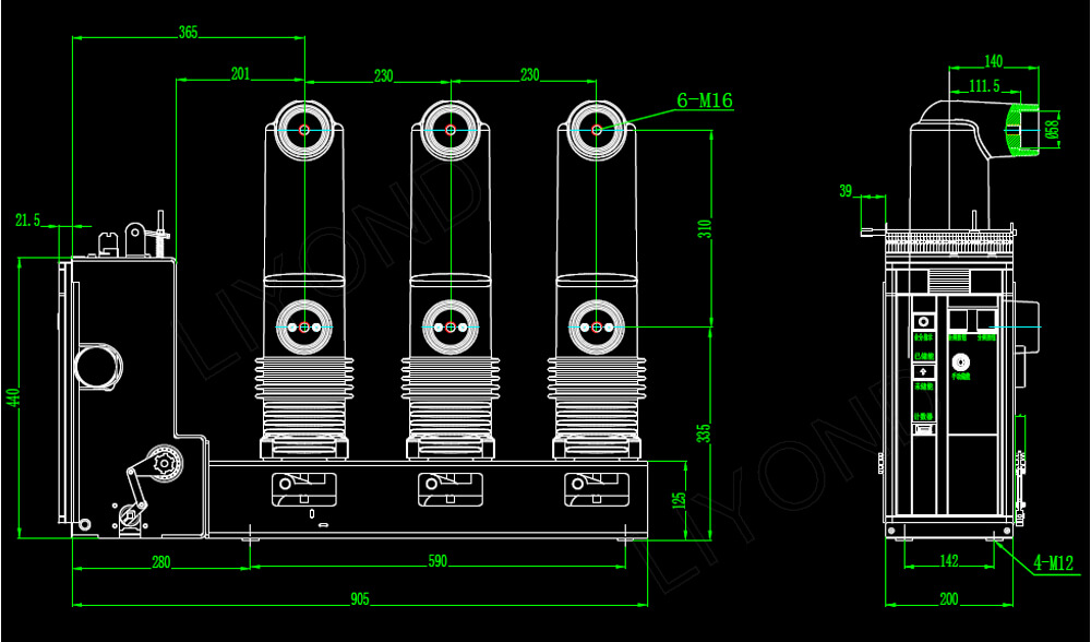 24 kV: n sivulle asennettava tyhjiökatkaisija (VGS Spring -käyttömekanismin avulla) on erittäin tehokas ja turvallinen tehonsuojauslaite, joka on suunniteltu keskisuurille ja korkeajänniteverkoille, joissa on erinomaiset eristysominaisuudet ja murtokyky.